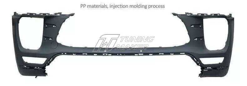 Передний бампер в сборе с решетками и воздуховодами, накладка и юбка для него выполнены из полипропилена и загрунтованы. Они не требуют предварительной доработки перед установкой. Все элементы являются репликами оригиналов, позволяя говорить об их доступной цене без ущерба для качества. Яркими деталями в экстерьере авто станут рамка номерного знака, поворотники с габаритами и противотуманные фары.