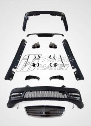 Комплект рестайлинга или переделки в более высокий класс AMG S63 включает все необходимые кузовные детали, чтобы оперативно модернизировать любимый автотранспорт. Считается, что аэродинамические характеристики имеет смысл улучшать любителям совершать скоростные заезды. Максимально ощутить преимущества от порогов, спойлеров и накладок можно при движении выше 120 км/час. Но даже обычная езда более комфортна, если выполнить тюнинг заднего бампера, установить боковые пороги и насадки на глушители.