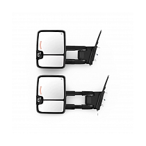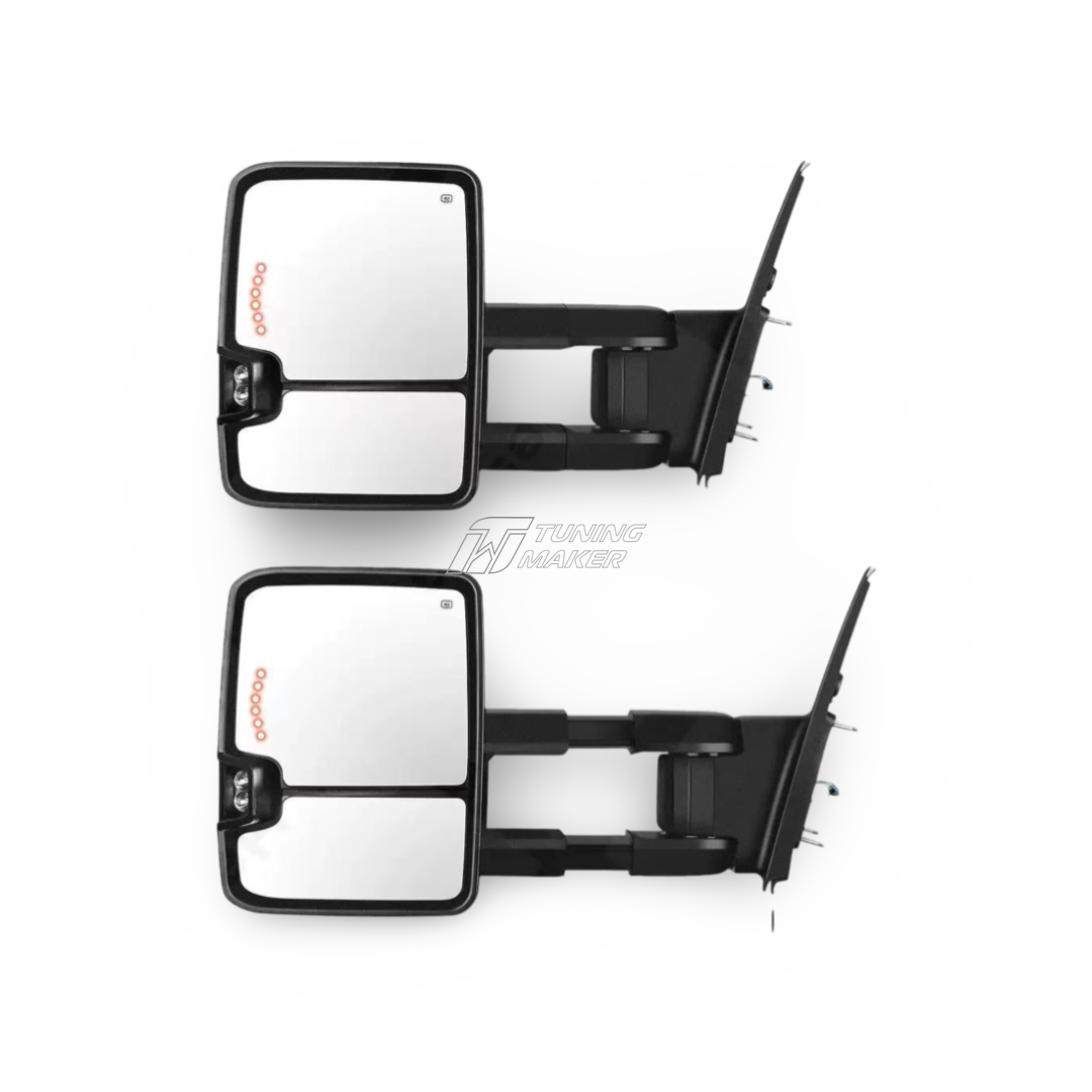 Представляем альтернативную конфигурацию боковых зеркал, предназначенную для Toyota Sequoia (2007–2022) и Toyota Tundra (2009–2021). Данная модель выполнена в чёрном цвете корпуса с чёрной наружной частью, что придаёт автомобилю современный и стильный вид. Зеркала оснащены встроенным поворотником, а их конструкция позволяет складываться и раскладываться с увеличенным расстоянием, обеспечивая дополнительное удобство в условиях ограниченного пространства.