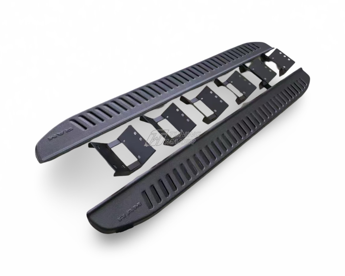 Эти оригинальные боковые пороги созданы специально для Dodge Ram 1500 2018+ и идеально подходят для всех комплектаций, включая мощный RAM 1500 TRX 2020+. Комплект выполнен с учётом особенностей дизайна и функциональности модели, добавляя защиту и улучшая удобство посадки и высадки.
