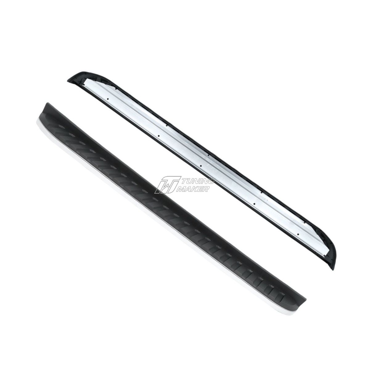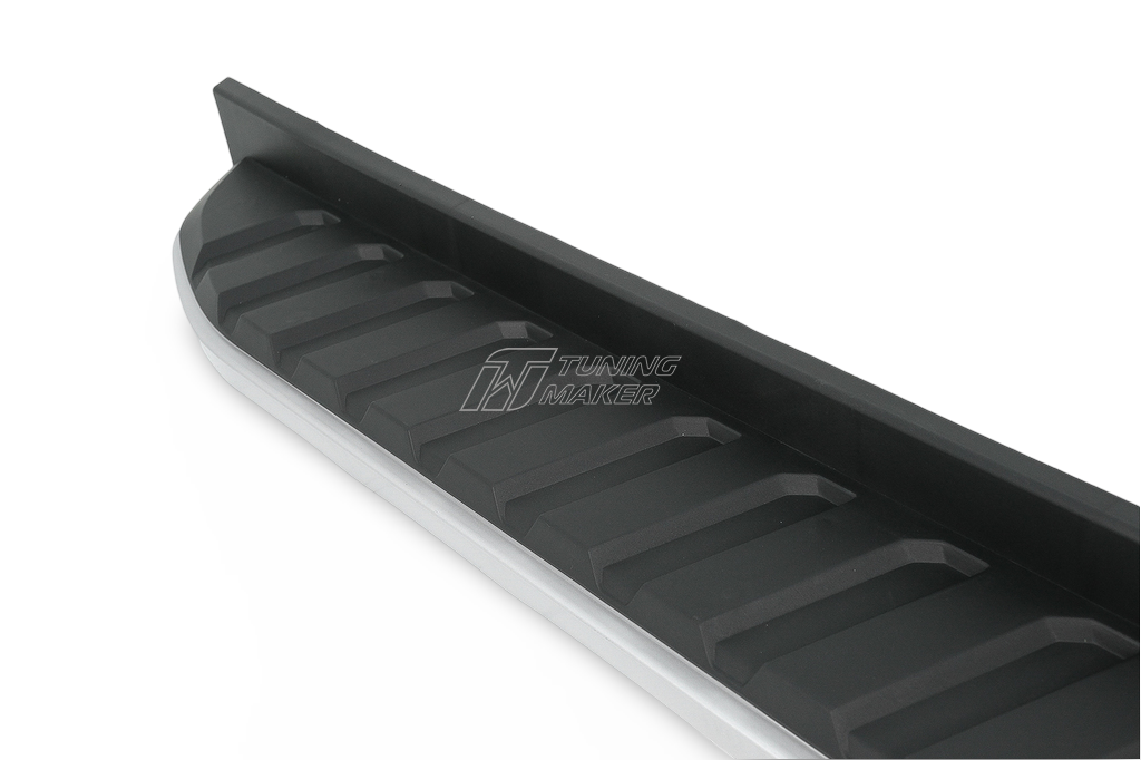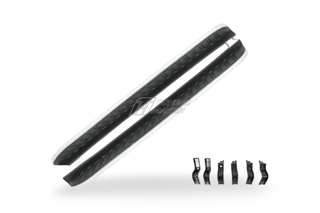 Эти боковые подножки изготовлены из качественного алюминиевого сплава, который отличается высокой прочностью и стойкостью к коррозии. Верхняя часть, имеющая элементы из пластика и резины, предотвращает скольжение даже в непогоду, гарантируя безопасность пассажиров и водителя при посадке и высадке.