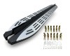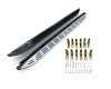 В комплект входят два боковых порога, стальные крепления и болты. Установка производится в штатные места с использованием болтовых соединений, что позволяет без доработок заменить стандартные элементы. Изделие полностью совместимо со штатными брызговиками и частично выполняет их функцию, эффективно защищая передние двери от загрязнений.