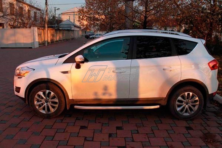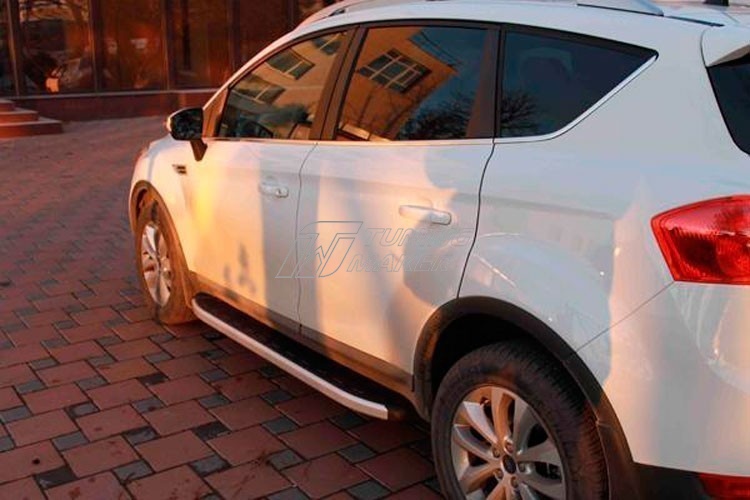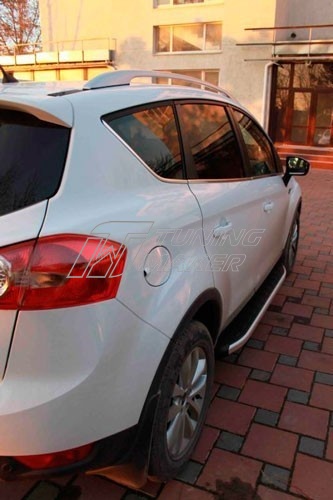 Подножка для Ford Kuga изготовлена турецким производителем Can-Auto. Прекрасное сочетание дизайна и повышения уровня безопасности за отличную цену - вот что объединил в себе данный порог. Для его изготовления используется специально спрессованный на роботизированных станках алюминиевый состав. Также в комплекте присутствуют модельные крепежные кронштейны, которые выполнены из стали специально для этой модели авто. В процессе монтажа не нужно сверлить лишних отверстий. Штатные места заранее предусмотрены для этого аксессуара производителем Ford.