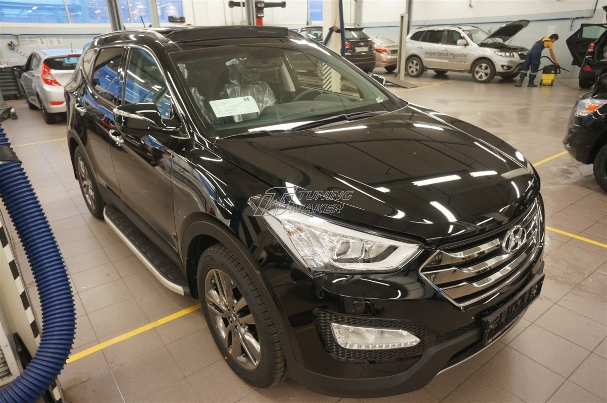Модель боковой подножки для Hyundai Santa Fe - незаменимый элемент наружного тюнинга, который положительно отмечен многими автовладельцами.