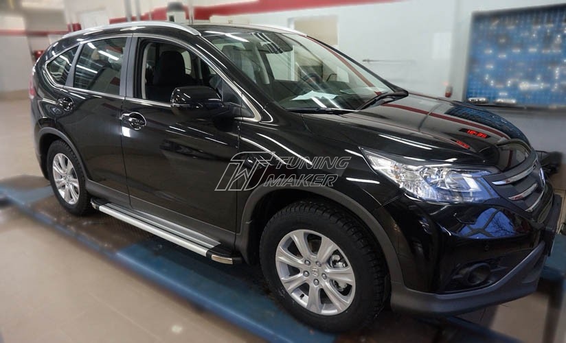 Созданная специально для автомобиля Honda CR-V боковая подножка - это продолжение автомобиля, аксессуар, который не просто дополнит экстерьер, а улучшит удобство посадки, и обеспечит безопасность боковин машины. Производится данный аксессуар на автоматизированном заводе, где алюминиевый материал прессуется на роботизированных станках. Модельные крепления, которые подходят конкретно под штатные места автомобиля, изготовлены из стального сплава. Установка не займет много времени, поскольку владельцу остается только установить крепежи в предназначенные для них места.