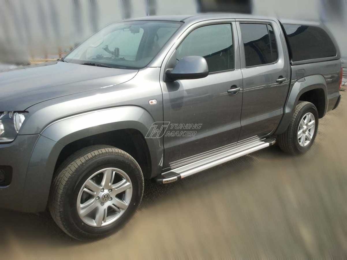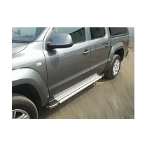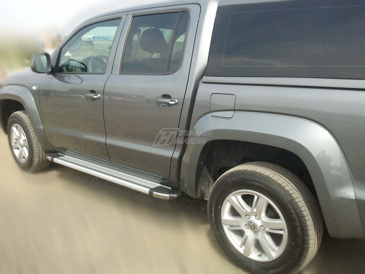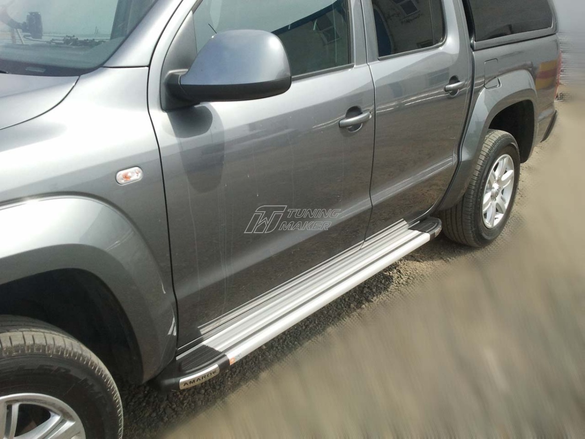 Автомобильные подножки или, как их еще называют, ступеньки изготовлены из цельного, cпрессованного алюминия, специально для Volkswagen Amarok. Этот аксессуар тюнинга будет действительно полезен, так как способен выполнять не только прямую функцию подножки, но еще и эстетическую и защитную. Крепежные кронштейны являются модельными, так как разработаны специально под технологические отверстия в Amarok, предусмотренные заводом VAG.