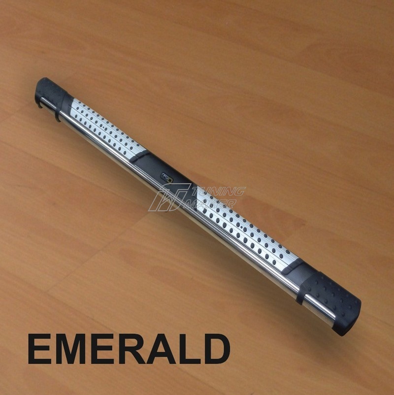 Один из наиболее востребованных элементов наружного тюнинга - это автомобильные подножки. Пороги "Emerald" популярны благодаря своему необыкновенному дизайну, высокой степенью надежности и качества. Они предназначены не только для более удобной посадки в автомобиль, но и также для защиты боковых поверхностей автомобиля от повреждений, а еще будут привлекательным элементом наружного тюнинга. Данные пороги изготовлены специально для Porsche Cayenne, так как крепежные кронштейны этих ступенек разработаны под штатные технологические отверстия, конкретно этих автомобилей, дополнительного сверления кузова не требуется.