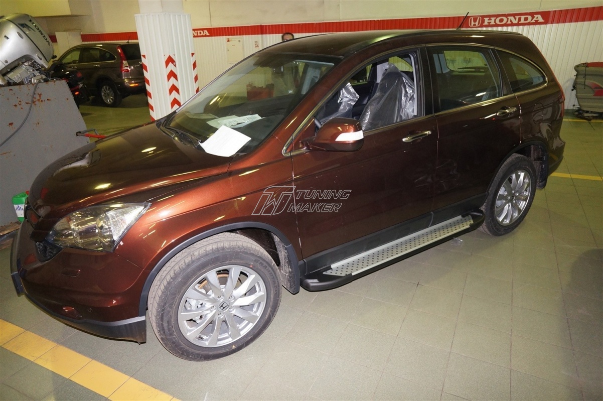 Ступенька для Honda CR-V - заметное дополнение в экстерьере автомобиля. Направленная как на эстетические, так и на практические задачи, подножка делает боковины более защищенными при случайных столкновениях, а также при езде по проблемной дороге. Порог выполнен из современного сплава, который обладает устойчивостью износу. Чтобы установить подножку, следует поставить крепления в продуманные для них точки в кузове автомобиля. Благодаря правильному распределению веса при установке, аксессуар не будет гнуться.