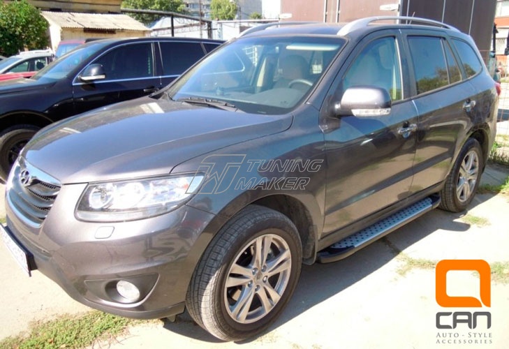 Ступенька для Hyundai Santa Fe - это великолепный дизайн, который сливается с экстерьером автомобиля и добавит ему прекрасный завершенный вид.