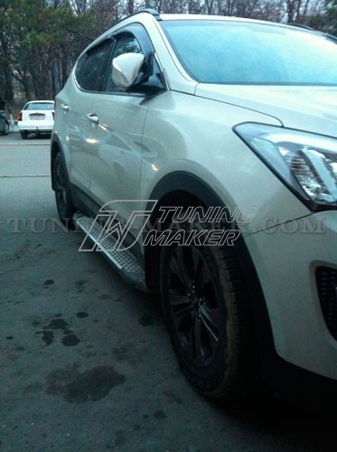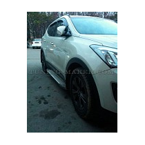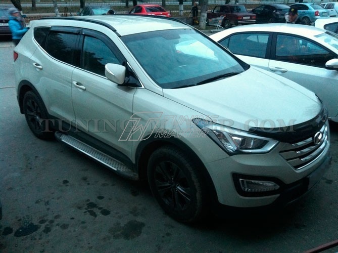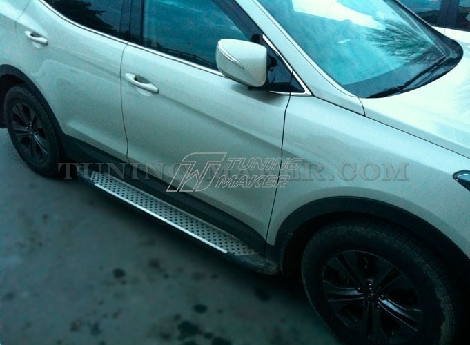 Боковая подножка для Hyundai Santa Fe - это не только декоративный аксессуар, идеально дополняющий экстерьер автомобиля. Это незаменимый элемент, который позволяет делать посадку в салон машины еще удобнее, а также обеспечивает дополнительную защиту машины при несильных столкновениях и в случае отскакивания предметов из-под колес.