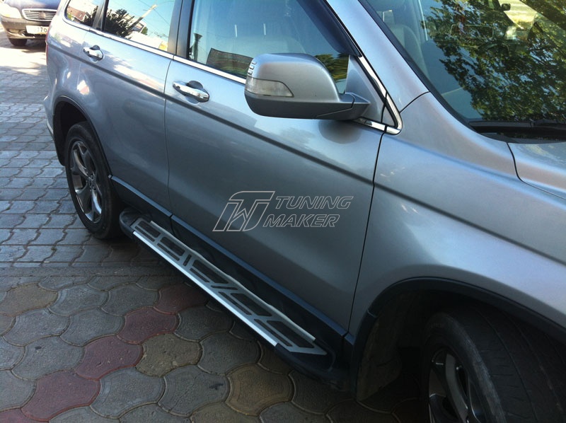 Представленная модель подножки - гармоничное дополнение, которое позволит сделать дизайн еще более эстетичным и продуманным. Порог выполнен для Honda CR-V, поэтому крепежи идеально подходят к штатным местам в корпусе машины. Многие водители подчеркивают необходимость такого элемента, аргументируя практичными преимуществами. Порог - это помощь при посадке, а также защита от незначительных повреждений и царапин. Также он берет на себя задачу брызговика, что также очень важно. Для того, чтобы не было скольжений, ступенька покрыта резиновой накладкой. Для правильной установки также имеется специальная пошаговая инструкция.