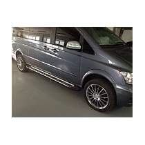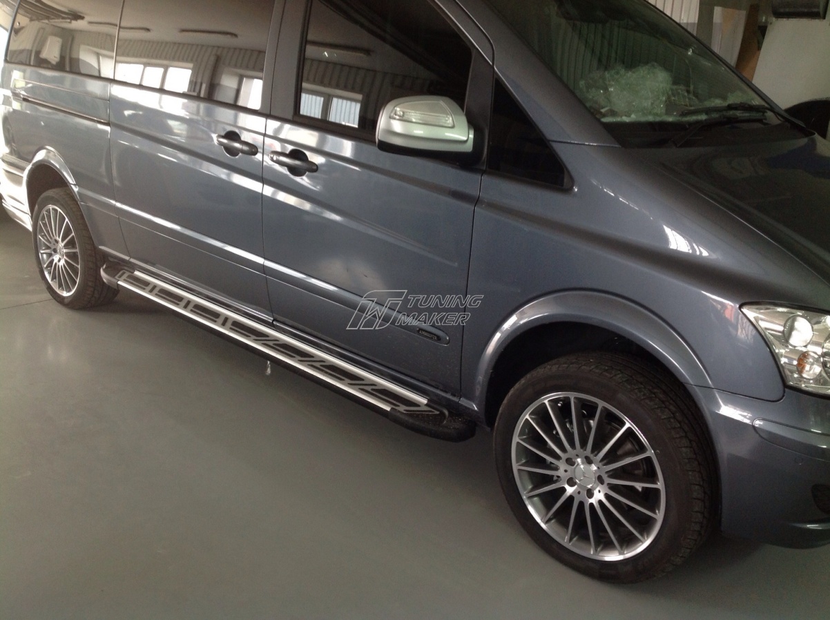 Автовладельцы устанавливают боковые подножки на Merсedes Vito с целью совершенствования экстерьера автомобиля, а также для обеспечения повышенного уровня защиты боковин автомобиля. Аксессуар отлично продуман до мелочей.