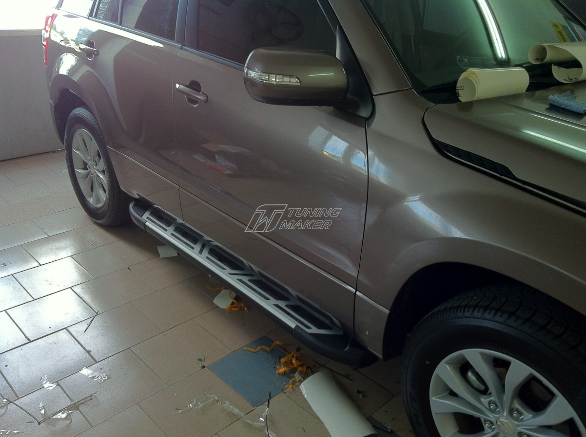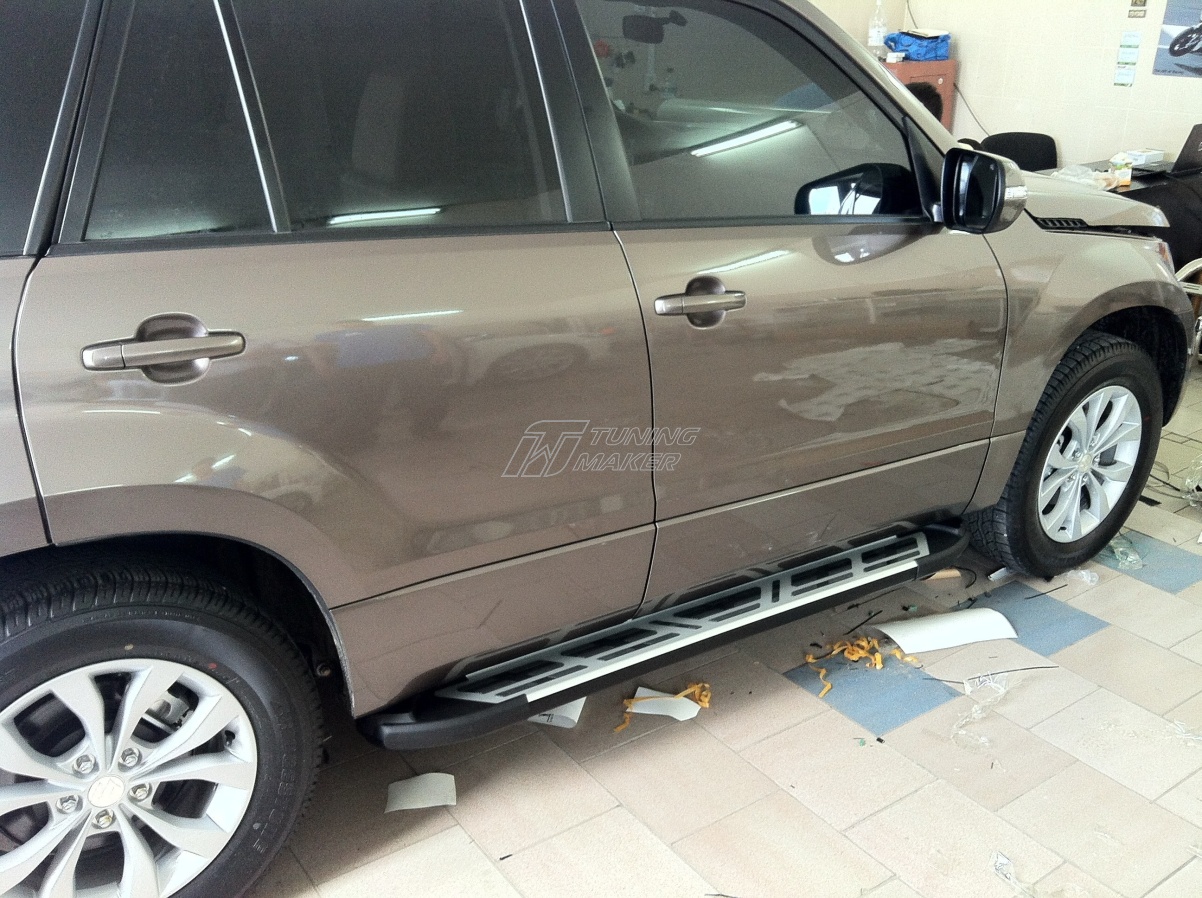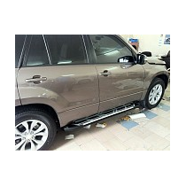 Великолепный, функциональный и надёжный элемент наружного тюнинга - всё это боковые подножки для Suzuki Grand Vitara. Автомобильные пороги изготовлены из высококачественного алюминия и предназначены для более удобной посадки в автомобиль, а также выполняют некоторые эстетические и защитные функции. С боковыми порогами ваш пикап, действительно, станет выглядеть выразительней и интересней.