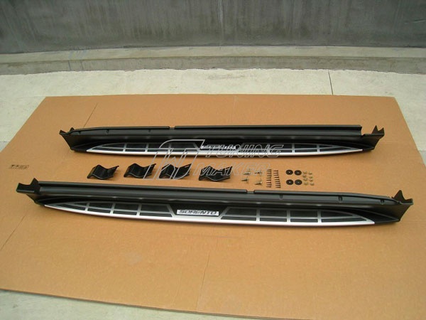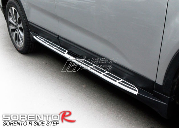 Данные боковые пороги являются штатными и разработаны индивидуально для Kia Sorento R. Крепления этих подножек устанавливаются в, предусмотренные заводом изготовителем KIA, штатные места, исключая какие-либо просверливания и изменения кузова. Поставляются в комплекте из двух порогов, комплекта крепежных кронштейнов и инструкции по установке.