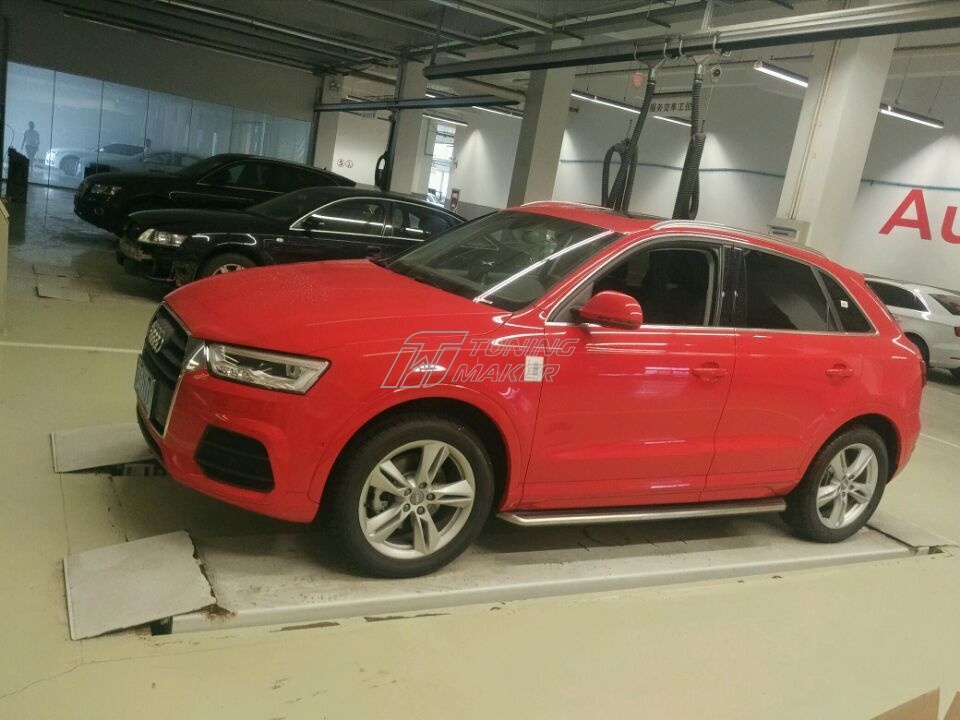Боковая подножка для Audi Q3 - это оригинальный аксессуар, который был создан для данной модели авто по заказу самого производителя. Подножка не просто дополнит автомобиль, а станет с ним одним целым. Помимо располагающего и заметного внешнего вида, порог также имеет и практичные преимущества, которые сведены к повышенному уровню удобства посадки, а также к защите боков автомобиля.