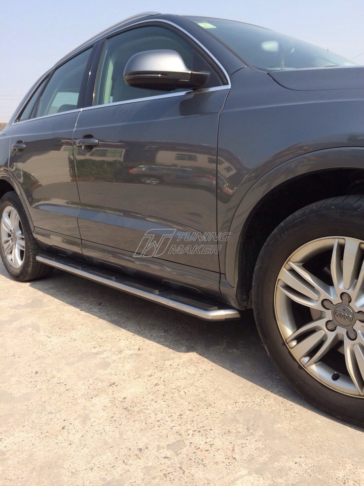 Штатная подножка для Audi Q3 - это оригинальный аксессуар, который произведен именно под заказ автопроизводителя. При создании порога был использован современный качественный материал, который гарантирует надежность и длительную службу изделия. С установкой порога автомобиль визуально изменится, обретет завершенный экстерьер. Изготовитель предусмотрел специальные накладки, которые защитят от скольжения при минусовой температуре. Для установки имеются специальные крепления, которые ставятся в штатные места в кузове. Правильное расположение аксессуара не даст ему прогнуться в середине.