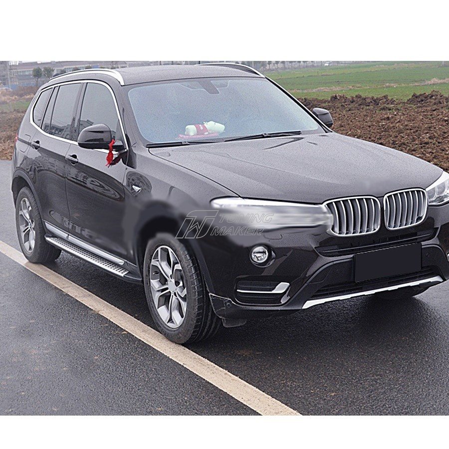 Данная оригинальная модель боковой подножки создана персонально для BMW X3 по заказу производителя BMW. Элемент тюнинга чаще всего уже есть в модели этого автомобиля при выходе с завода-изготовителя, но если отсутствует - его следует установить дополнительно.
