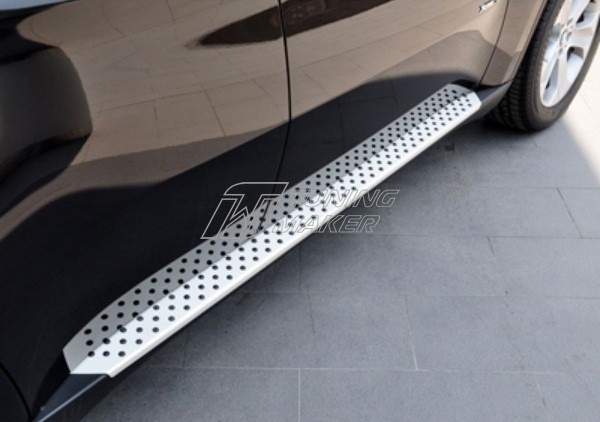 Действительно важным и полезным дополнением в BMW X6 станет боковая подножка. Этот аксессуар имеет множество преимуществ, которые заключаются как в дополнении экстерьера машины, так и в задачах практичного типа. Оригинальный порог, выполненный по заказу производителя BMW, сделает посадку более удобной, а также поможет защитить боковины от случайных ударов и от отскакивающих предметов. Полная комплектация включает в себя и специальные крепления, которые подходят конкретно под штатные места в X6.
