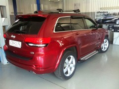 Штатный боковой порог для Jeep Grand Cherokee представляет собой оригинальный элемент наружного тюнинга, который создан по заказу самого автопроизводителя.