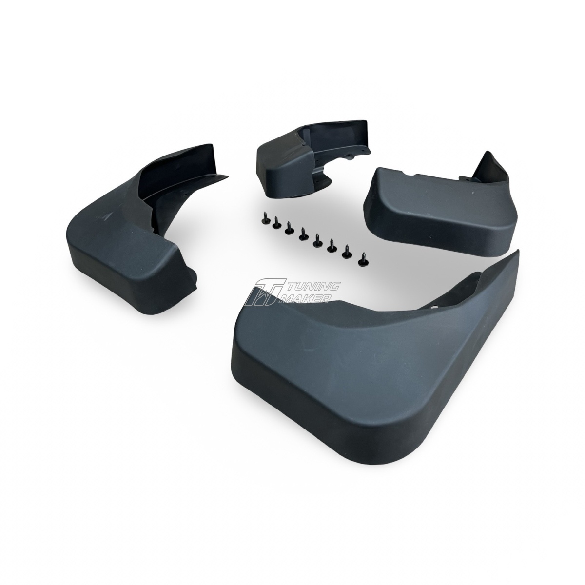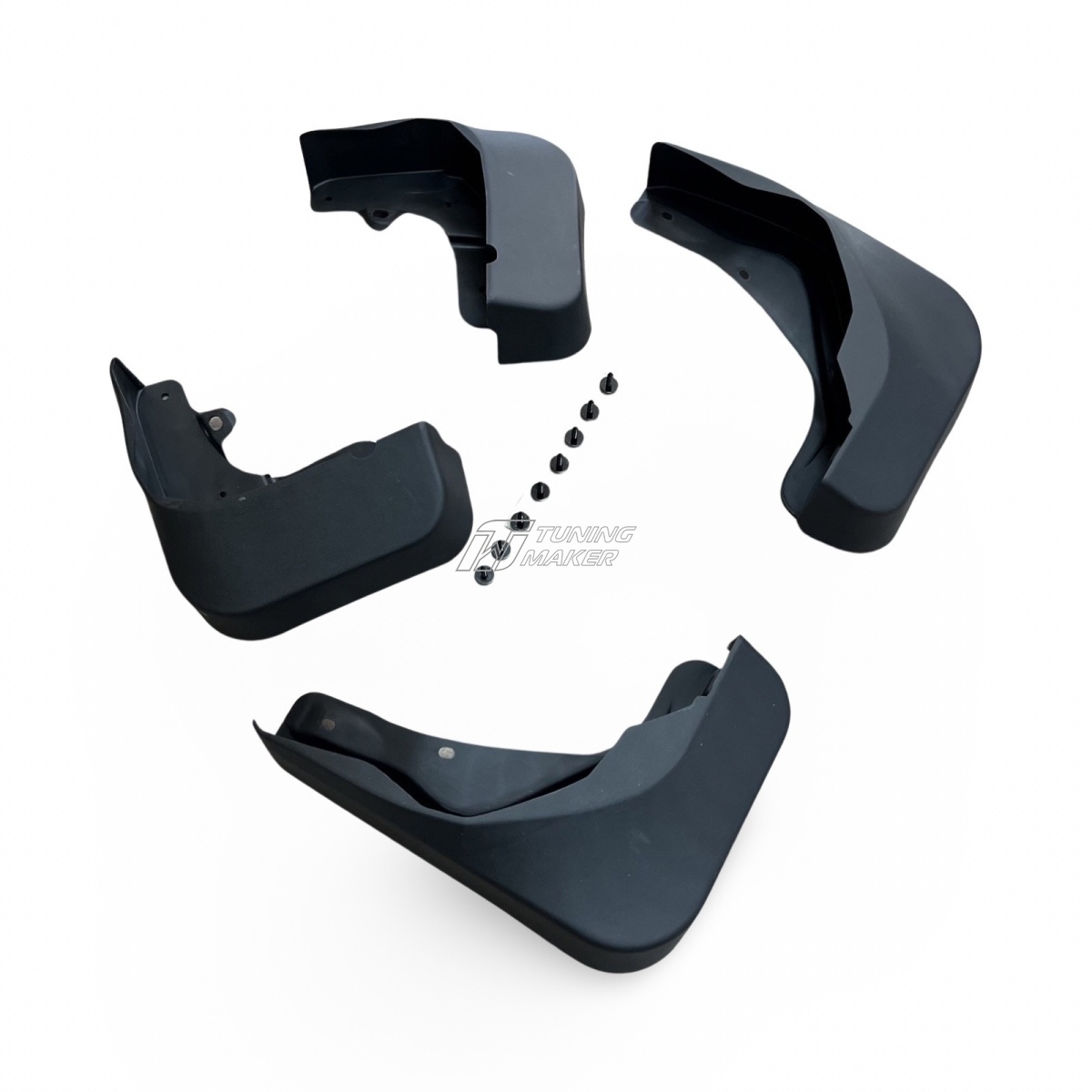 - Полный комплект для установки: В наборе предоставлены все необходимые крепления, которые обеспечивают быструю и надёжную установку брызговиков. Установка не требует дополнительных инструментов и проходит легко и быстро.