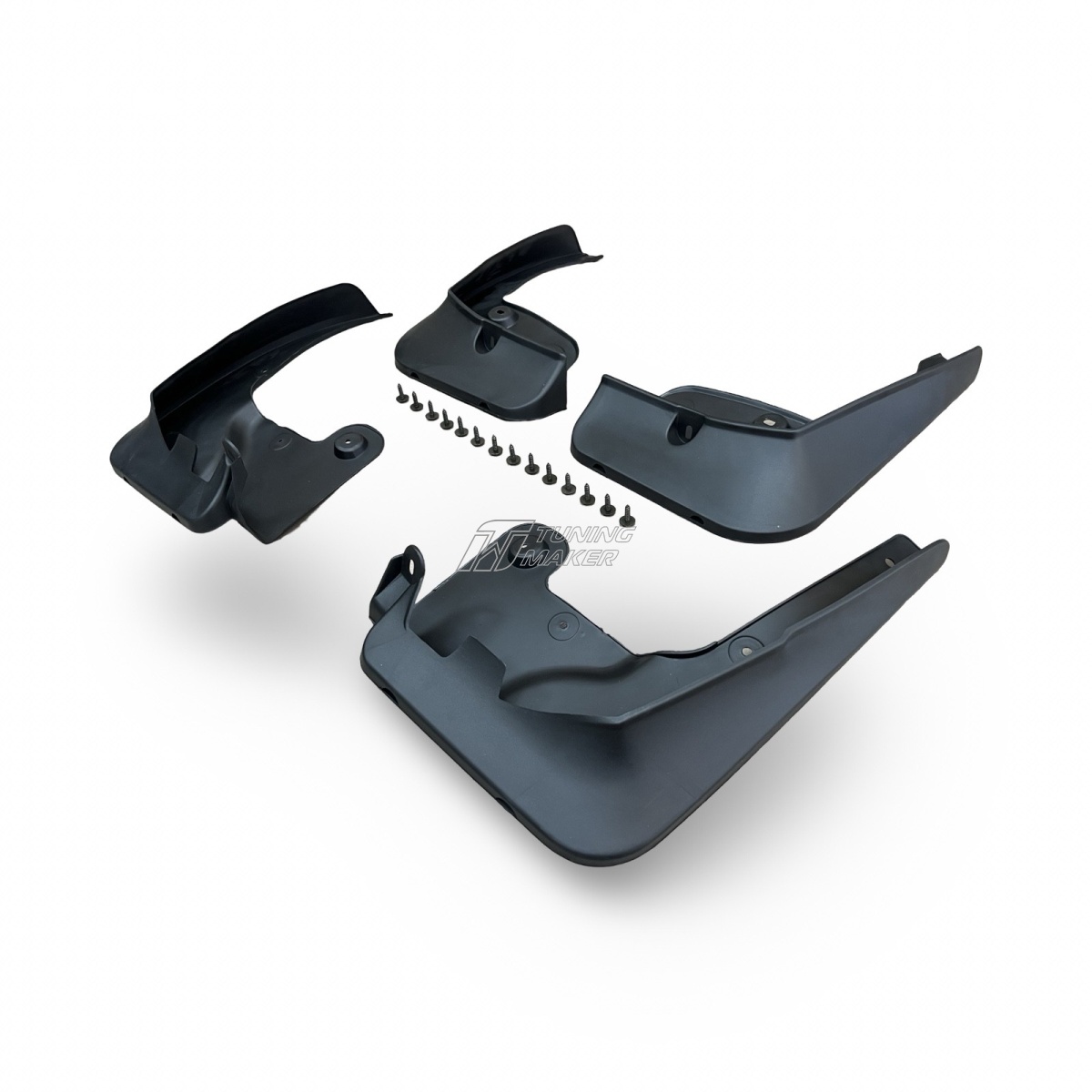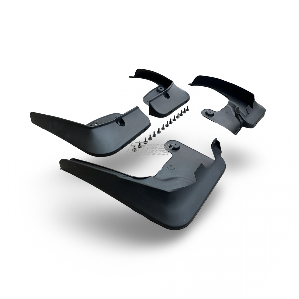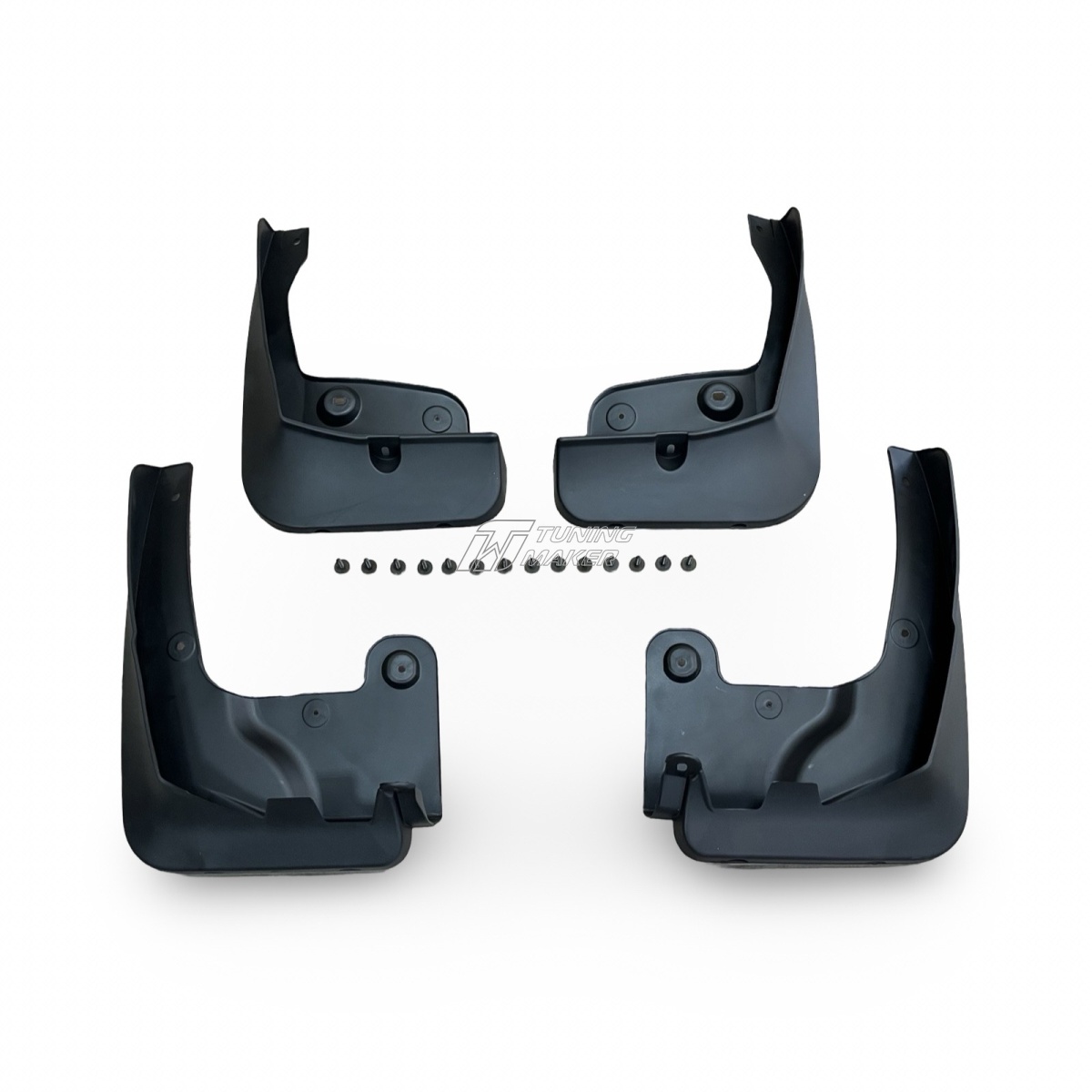 - Комплект из 4 брызговиков: комплектуется для передних и задних колёс и поставляется со всеми необходимыми креплениями для надёжного монтажа.