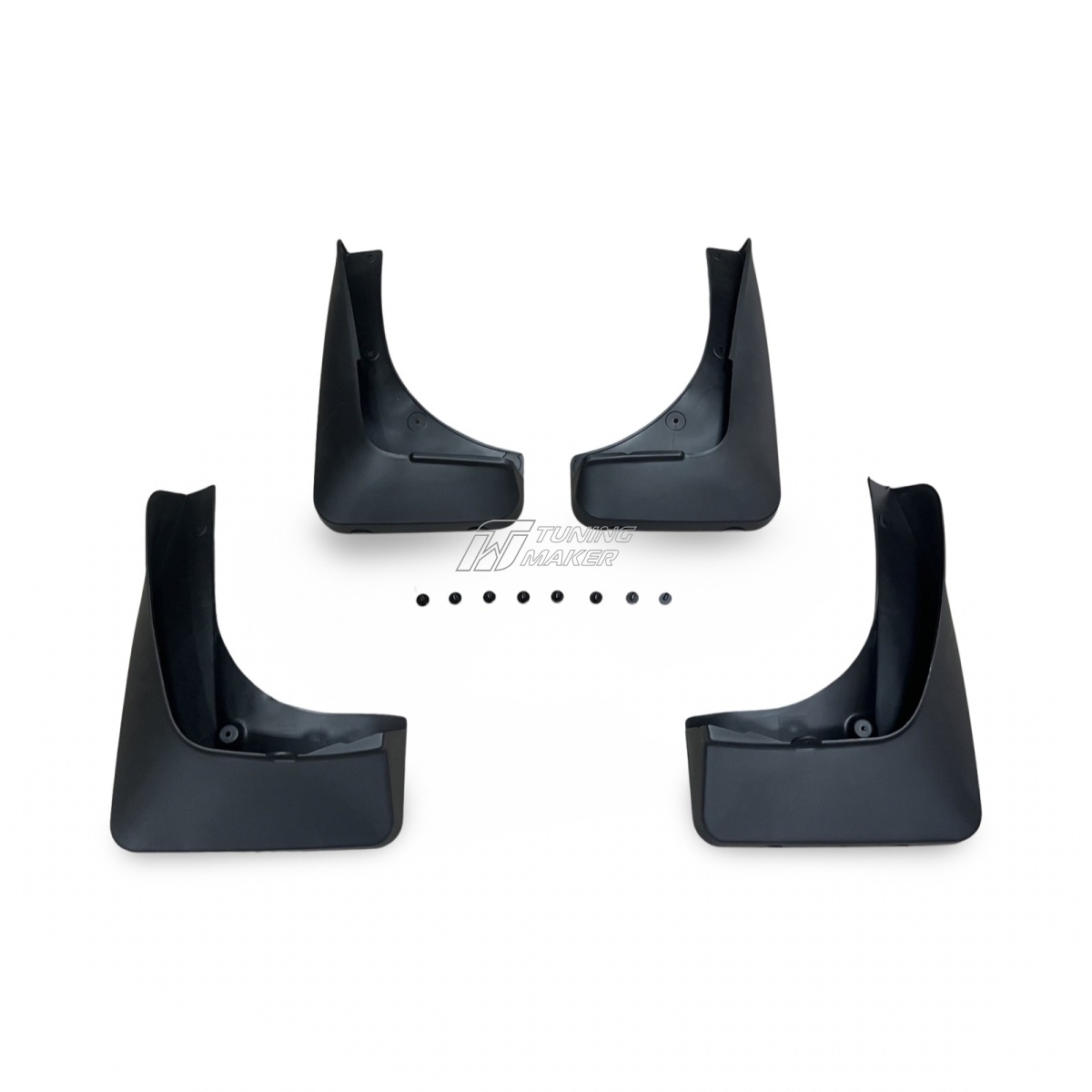 - Полная комплектация: в наборе предусмотрено 4 брызговика для передних и задних колёс, а также все необходимые крепления для простого и надёжного монтажа.