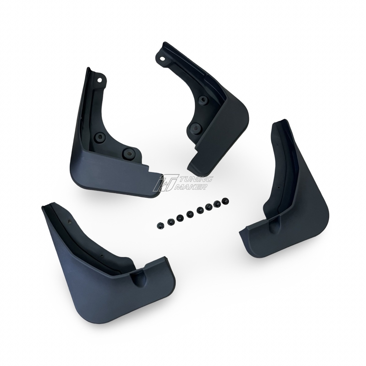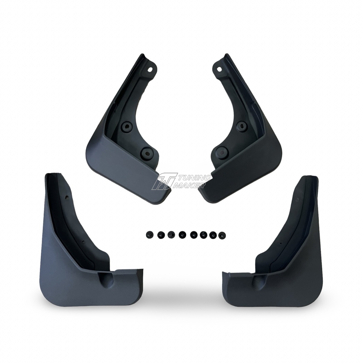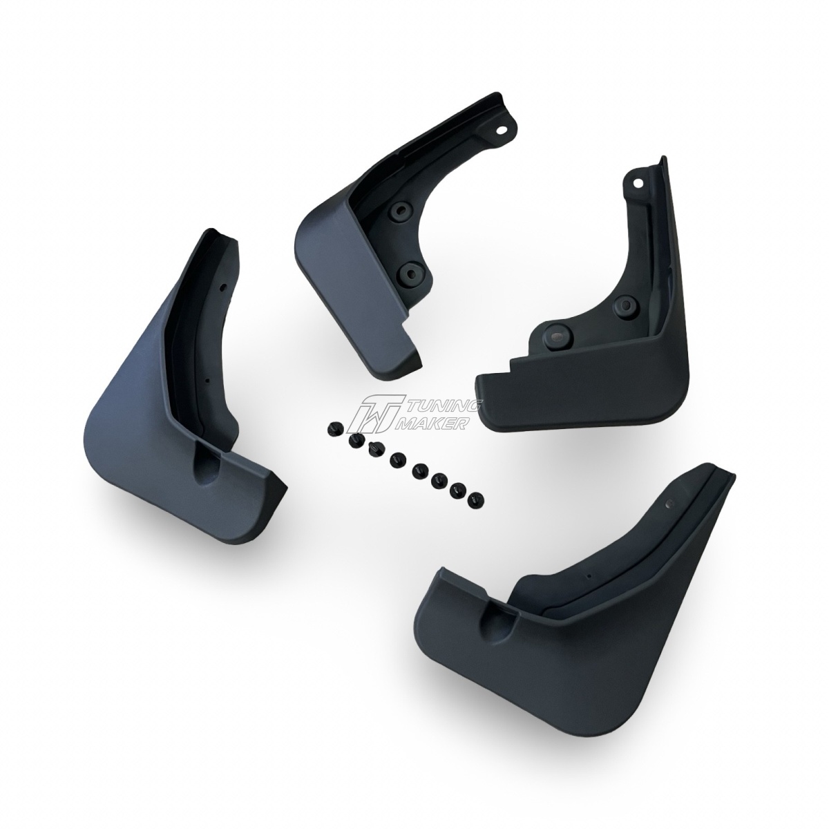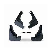 Комплект брызговиков отличается высокой эластичностью и прочностью, что позволяет им восстанавливать форму после контакта с бордюром или при других механических воздействиях. Эти аксессуары устойчивы к изменениям цвета и формы под воздействием агрессивных химических веществ, а также при экстремальных температурах.