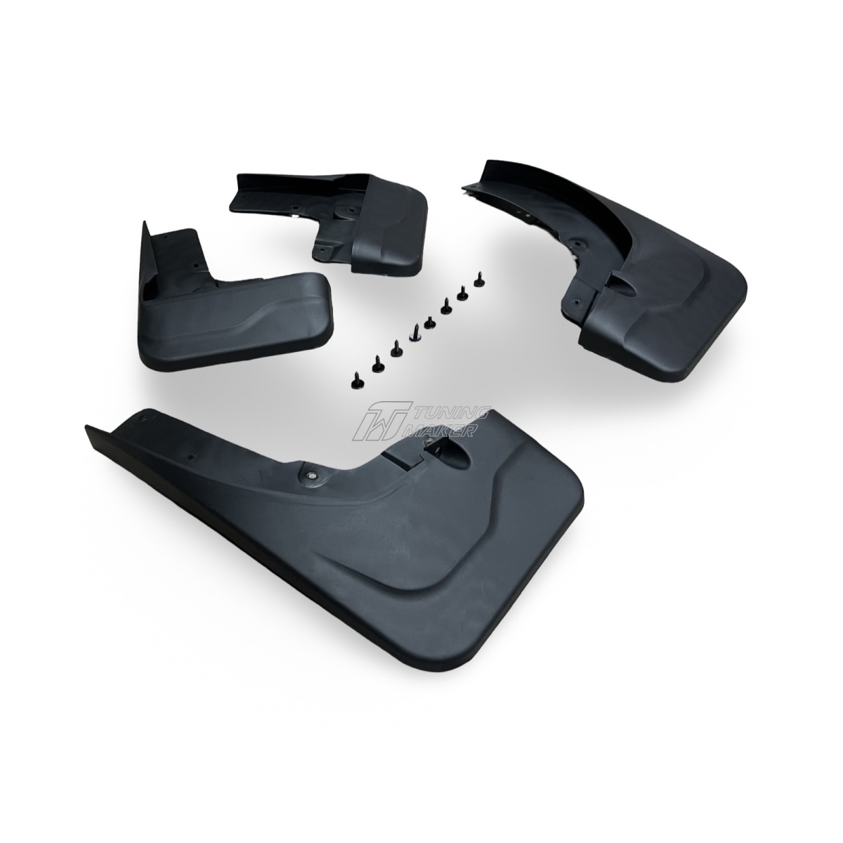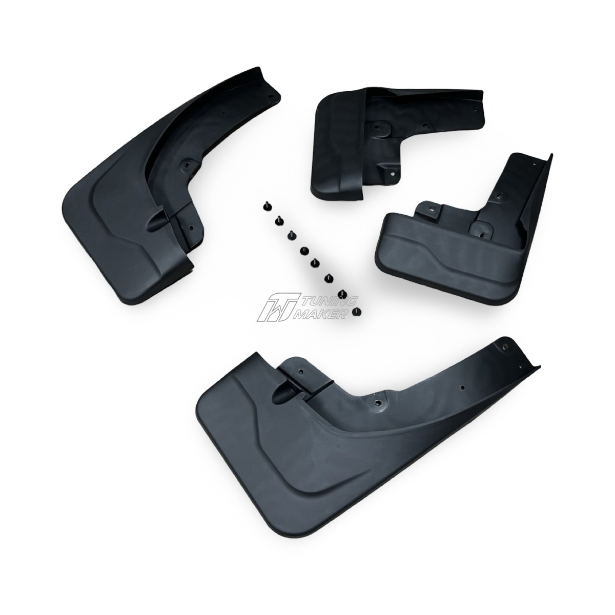 - Полная комплектация: набор включает 4 брызговика для передних и задних колёс, а также крепления для установки, что делает процесс монтажа лёгким и быстрым.