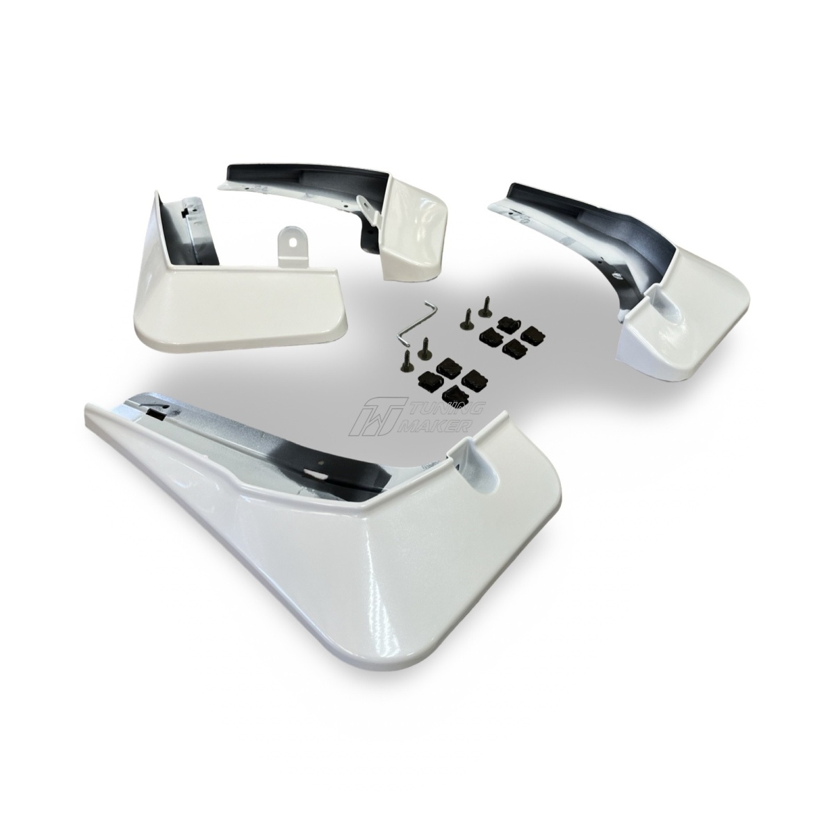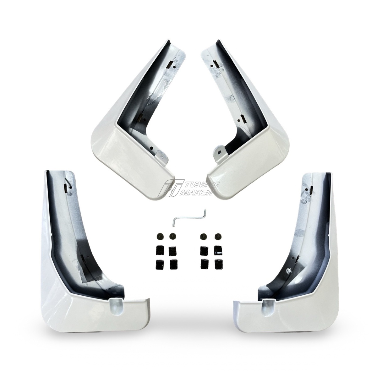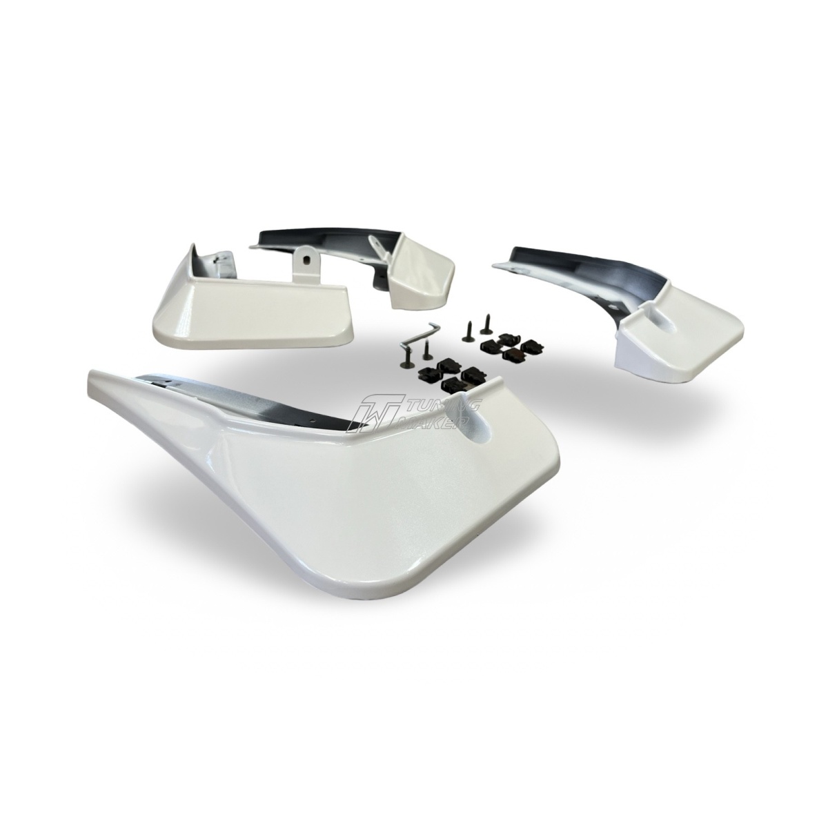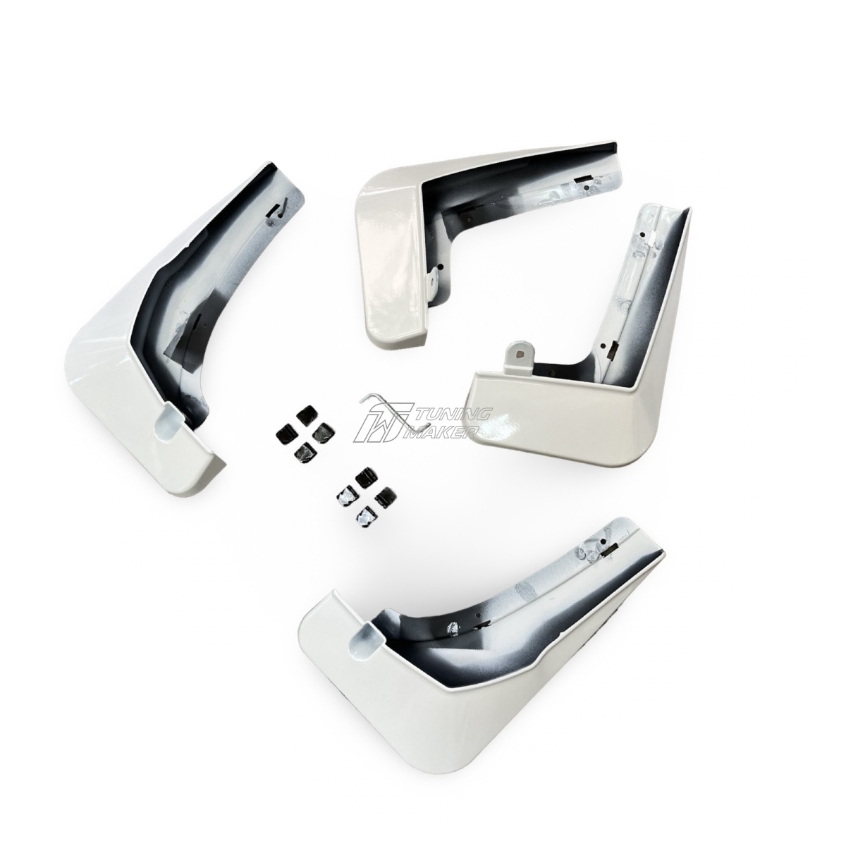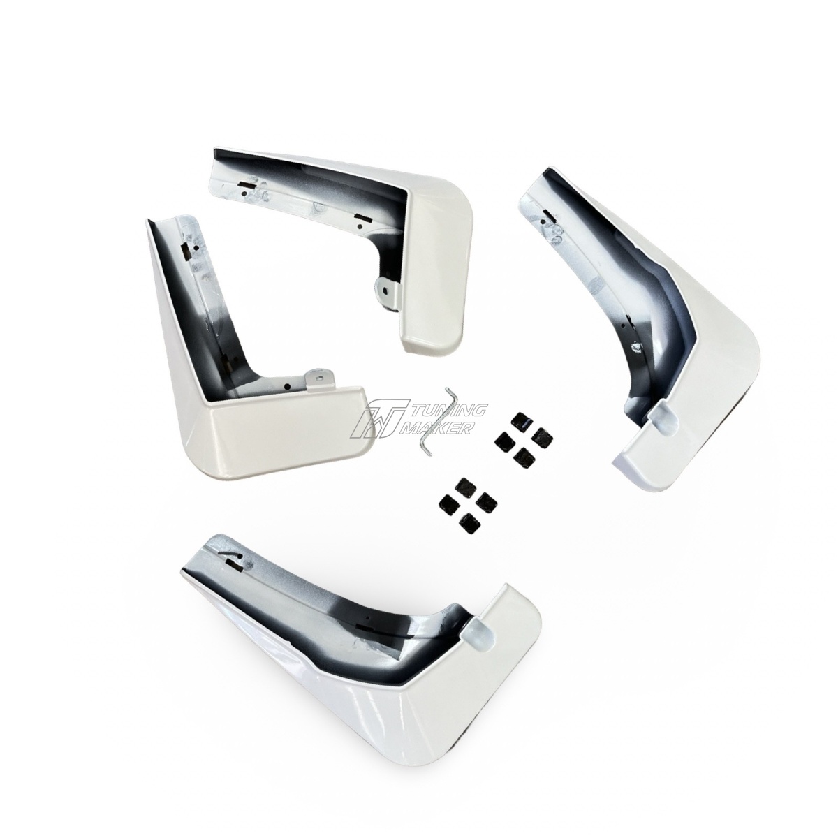 - Простота установки — комплект включает передние и задние брызговики, которые легко устанавливаются в штатные места без доработок. Точная подгонка к кузову исключает наличие зазоров и обеспечивает плотное прилегание.