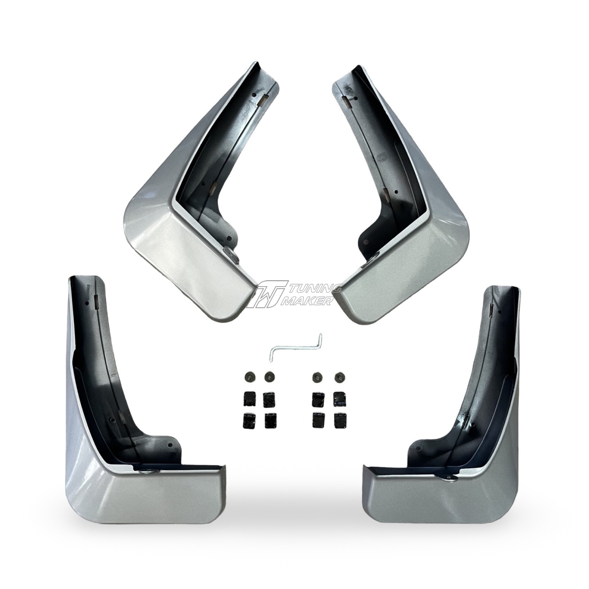 Оригинальные брызговики для Lixiang L9 2022+ в цвете серебристый металлик обеспечат надежную защиту кузова Lixiang L9 от грязи, камней и других дорожных загрязнений, сохраняя чистоту дверей и заднего бампера. Комплект включает четыре брызговика — два передних и два задних, которые идеально повторяют контуры кузова автомобиля, обеспечивая плотное прилегание и эстетичный вид.
