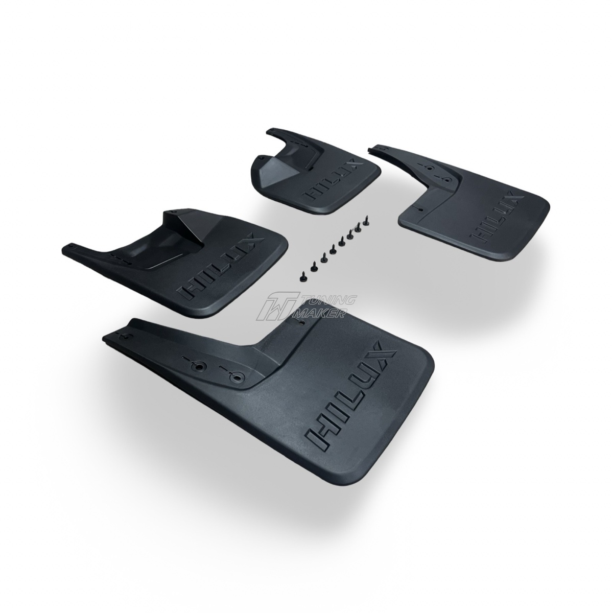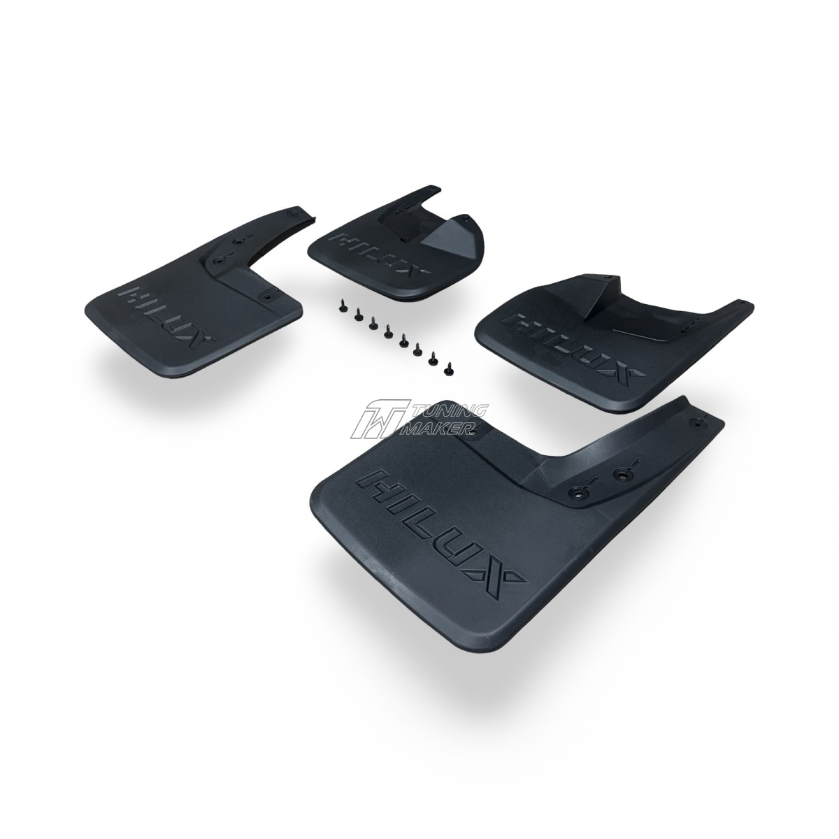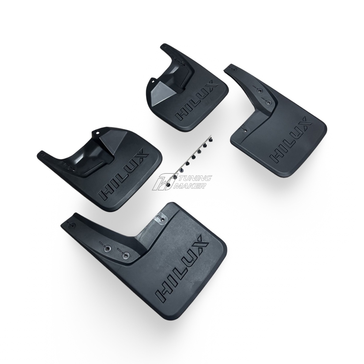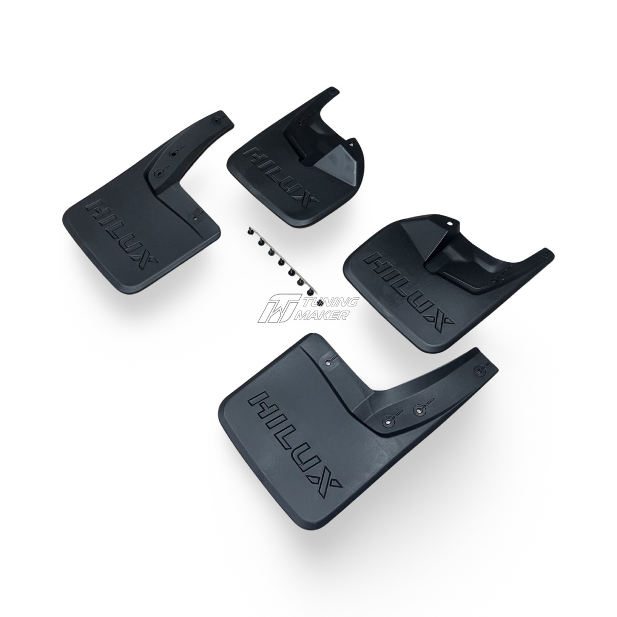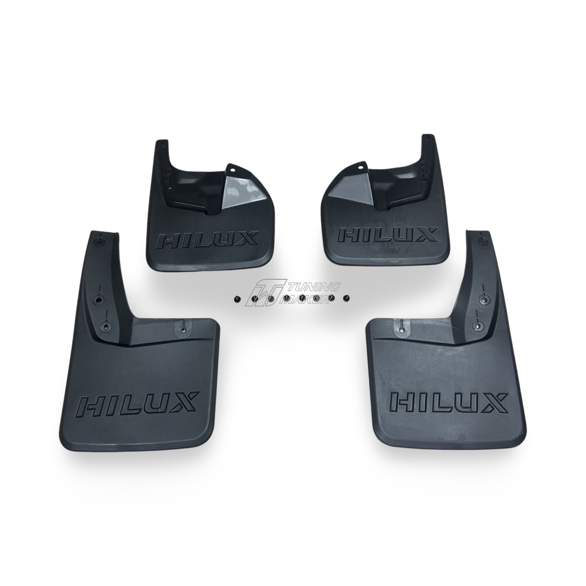 - Эстетичное дополнение к дизайну. Текстурированная поверхность позволяет брызговикам стать незаметной, но функциональной частью Toyota Hilux Revo, сохраняя целостность дизайна.