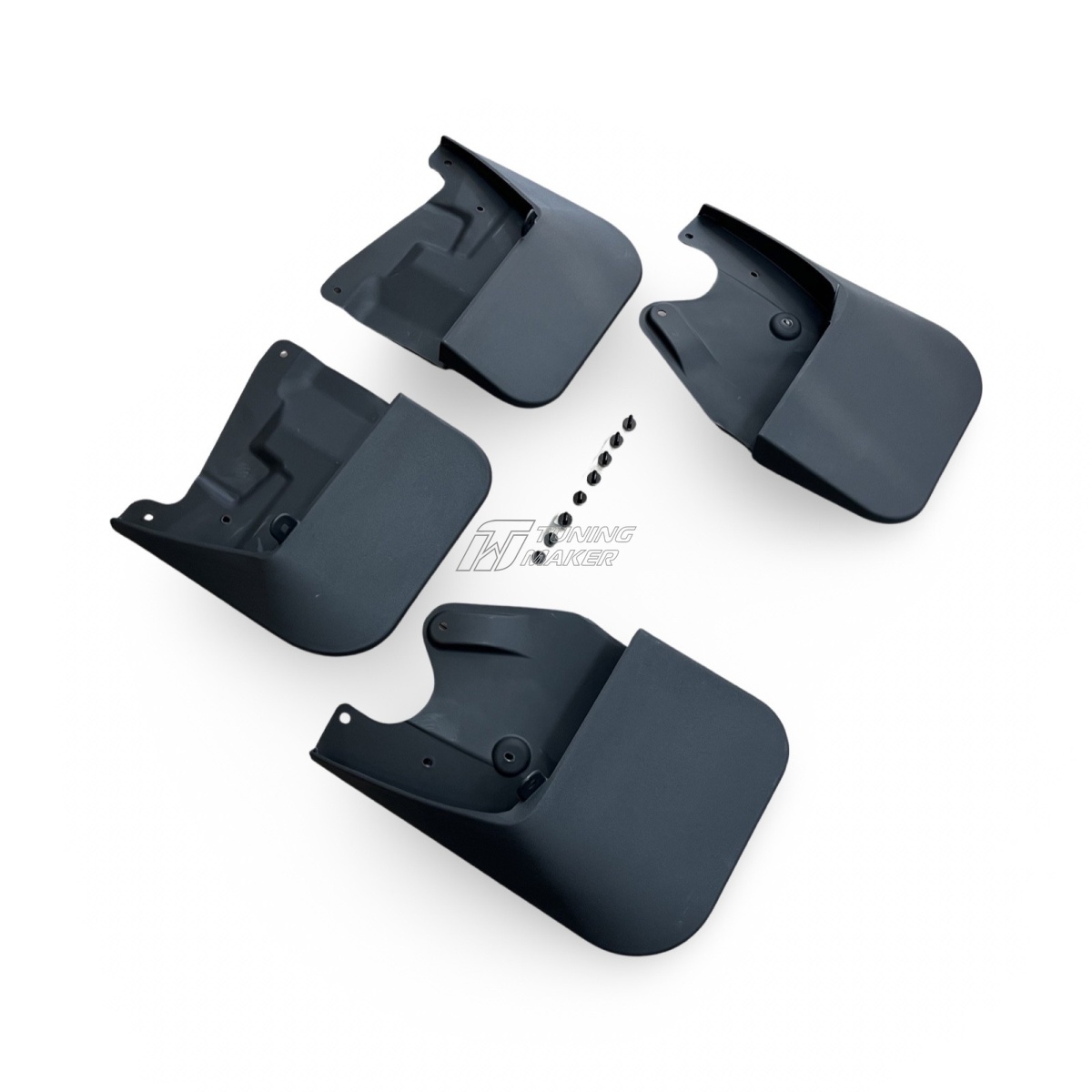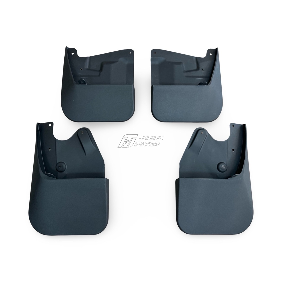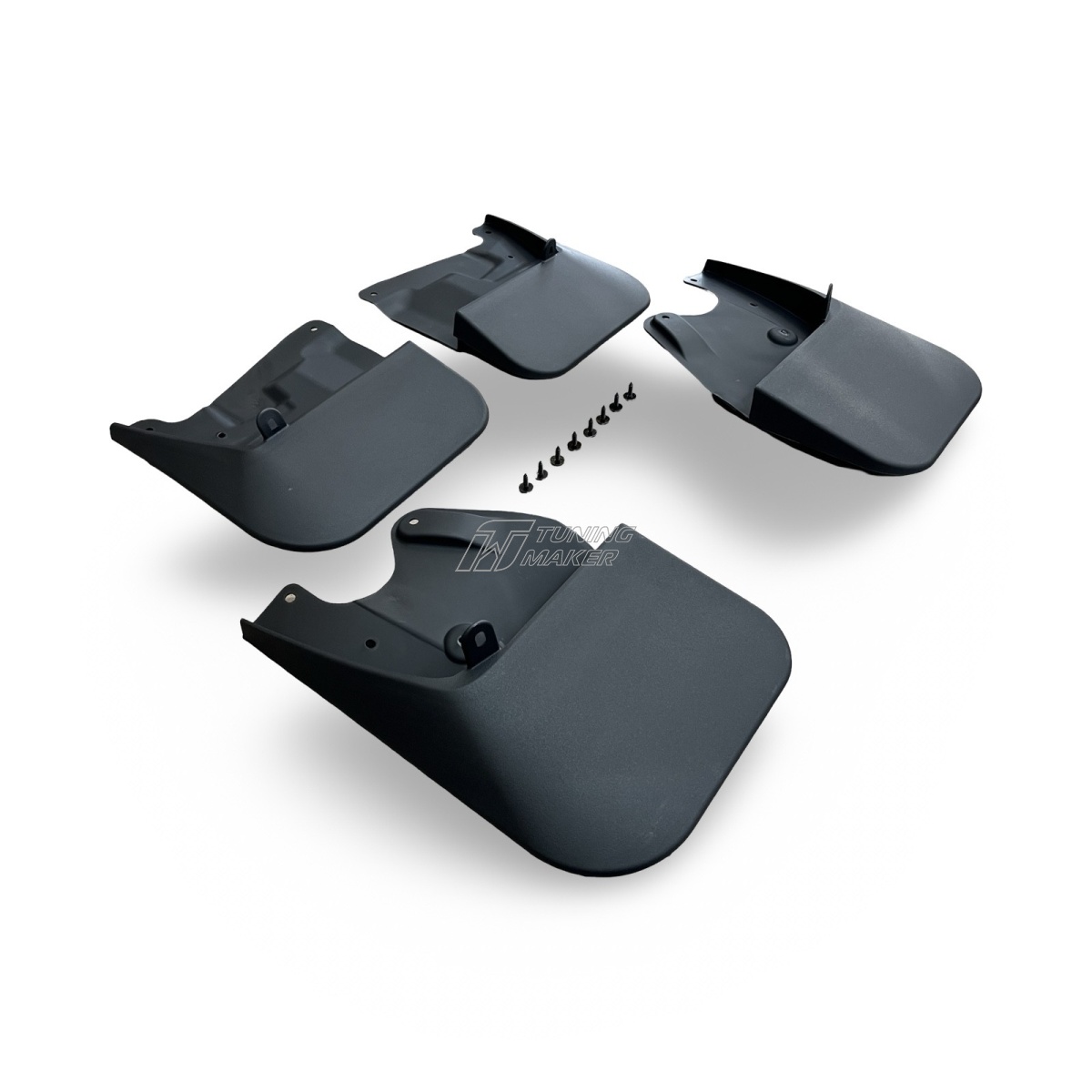 - Установка — комплект включает крепежи для лёгкой установки, что позволяет надёжно закрепить брызговики на штатные места.