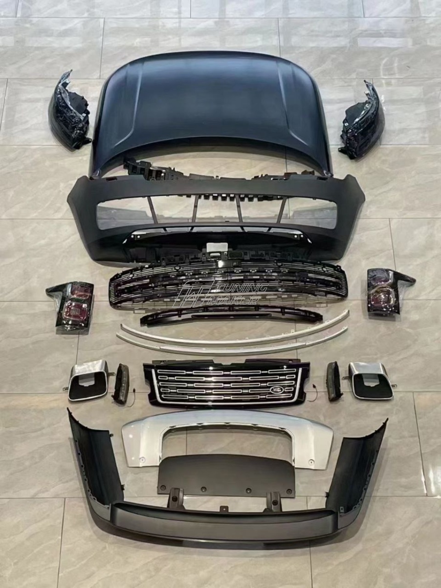 - Изысканный дизайн: Наш рестайлинг включает в себя передний бампер с ходовыми огнями, решетку радиатора и переднюю оптику, задний бампер, задняя оптика, диффузор с насадками на глушители и капот. Эти детали добавят вашему автомобилю современный и роскошный вид, который сравним с новыми моделями Range Rover.