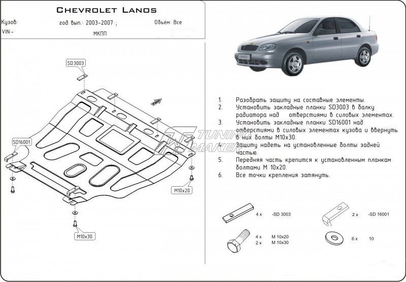 Защита картера КПП, Chevrolet Lanos 2005-2009, V - 1.5, МКПП/ZAZ Chance 2005-2014, V- 1.3, 1.5, МКПП