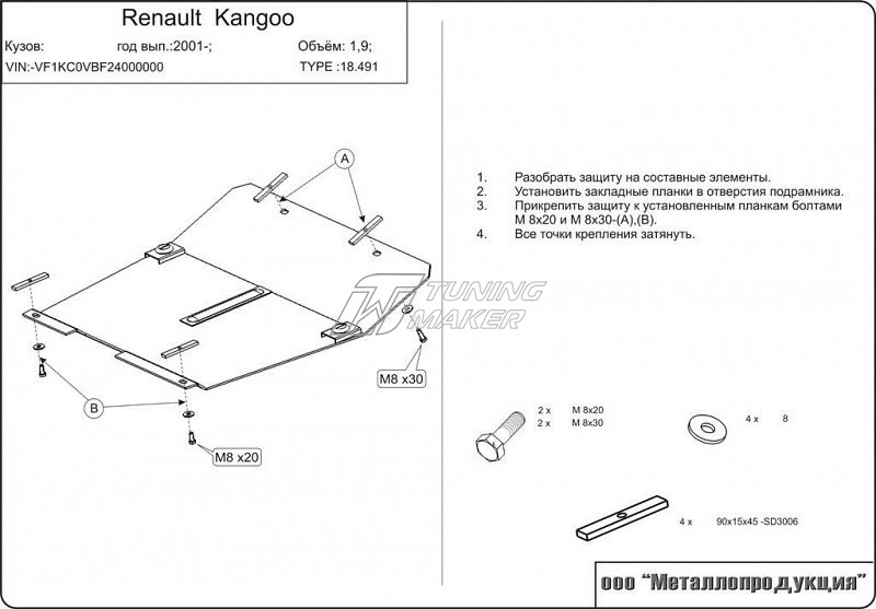Поддон в багажник для Renault Kangoo 1998 Чёрный