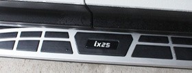 Боковые пороги Hyundai Creta IX25 2016+ производятся с использованием такого материала, как алюминий, что делает их устойчивыми к нагрузкам. Еще в конструкцию порогов входят пластиковые накладки и концевики. Данное изделие станет отличным дополнением к дизайну автомобиля, придаст ему монументальности и премиальный внешний вид. Ваше транспортное средство будет выделяться на дороге и привлекать взгляды, особенно, если в заводской тюнинг не входит этот элемент.