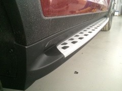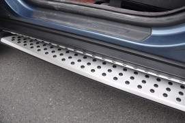 Пороги Hyundai Tucson 2015+ считаются хорошими, качественными и очень надежными. Это не просто элементы, которые используются для улучшения внешнего вида автомобиля, а и средства хорошей защиты. Подножки препятствуют попаданию грязи вовнутрь автомобиля, защищают автомобильный кузов от ударов, снижая повреждения. А также гарантируют удобство и комфорт при посадке или высадке из автомобиля, так как выступают в роли ступеньки, которая очень актуальна для джипов с высоким клиренсом.