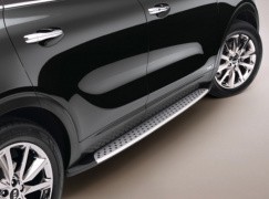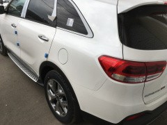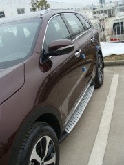 Современные штатные боковые пороги Kia Sorento 2015+ являются съёмными и могут быть изготовлены, как из металла, так и из полимерных материалов. Для их установки достаточно открутить фиксирующие болты и заменить вышедшую из строя деталь.