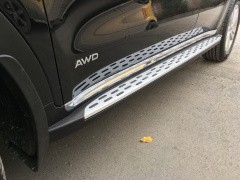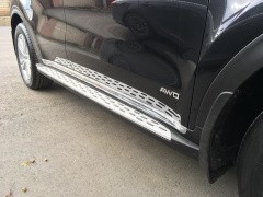 Оригинальные боковые площадки для KIA Sportage 2015 - это не просто модный и эффектный аксессуар для тюнинга, но и практичный элемент автомобиля. Детям и пожилым пассажирам будет удобнее садиться в авто, если есть порожек. Встав на него, можно быстрее достать до вещей в багажнике на крыше. ОН поможет очистить обувь в дождливый день, чтобы не нести грязь в салон. Ну и конечно, пороги уберегут кузов вашего KIA Sportage от нежелательного контакта с бордюрами.