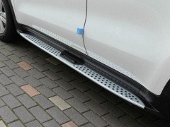 Прочные и надежные качественные боковые пороги Kia Sportage 2015+ в виде полноценной ступеньки обеспечат защиту кузова от ударов и повреждений сбоку и облегчат посадку/высадку пассажиров из автомашины. Боковые подножки имеют уникальный дизайн, который придаст стильный и динамичный вид автомобилю.